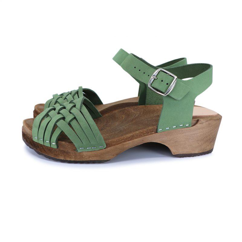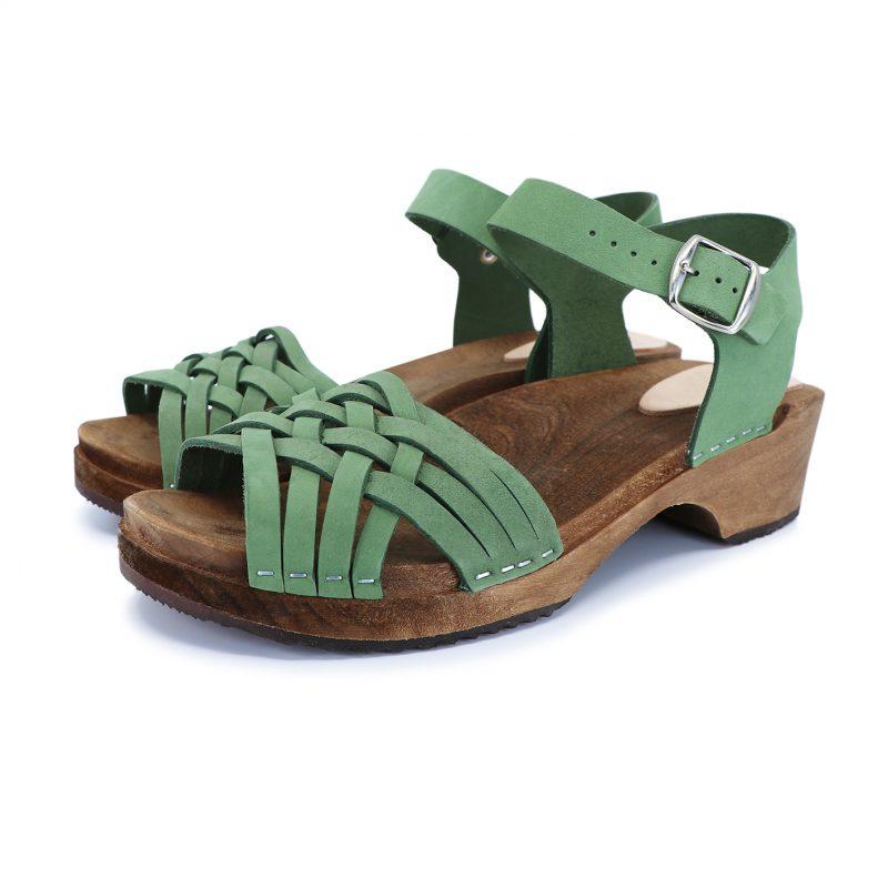 MÄRTA Holz Clogs Sandale flach grün Lack