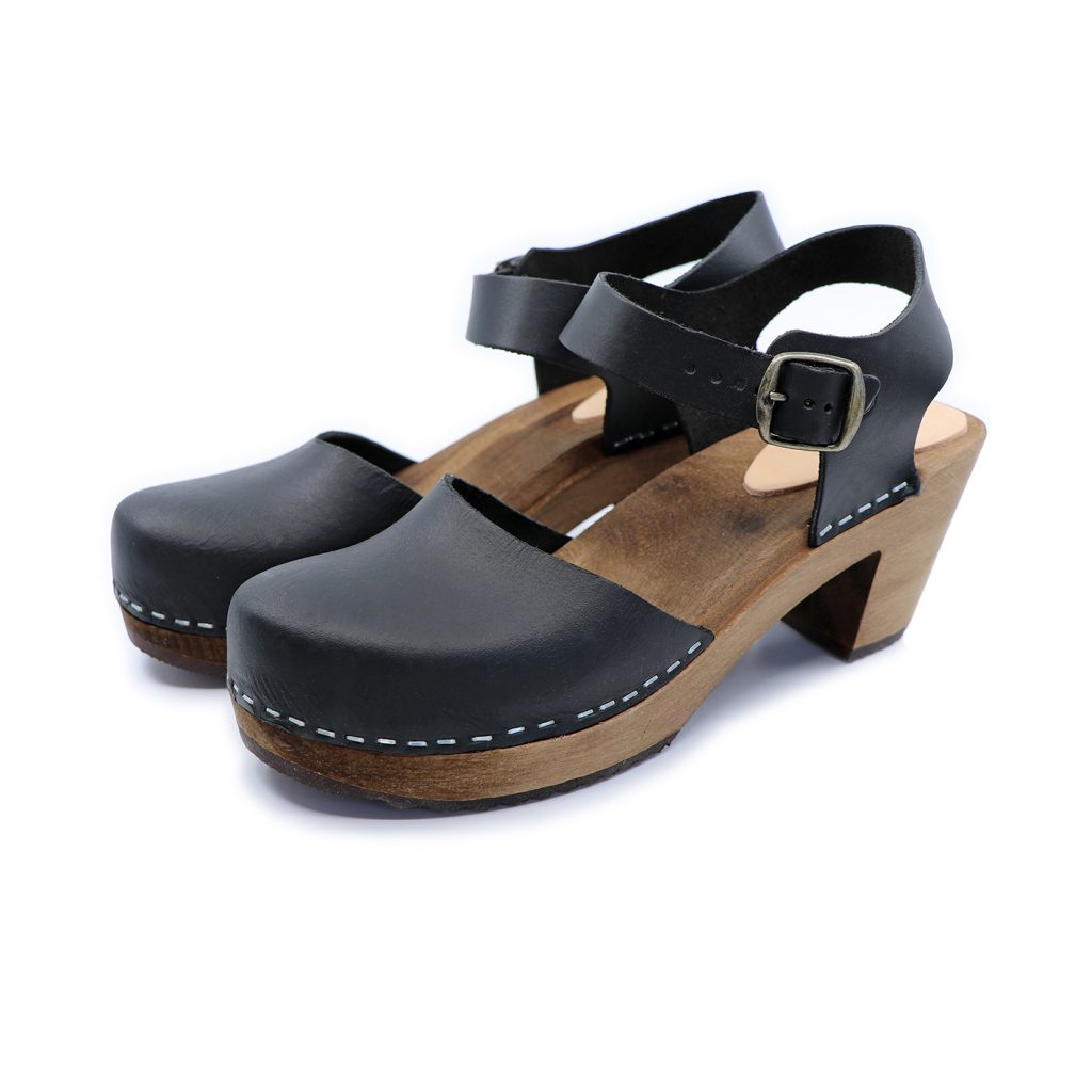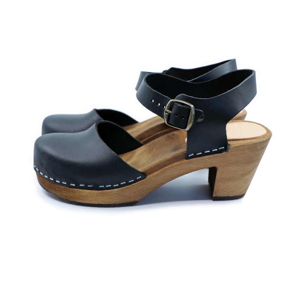 TILDE Holz Clogs Sandale mit Absatz onyx schwarz – für SCHLANKE Füße